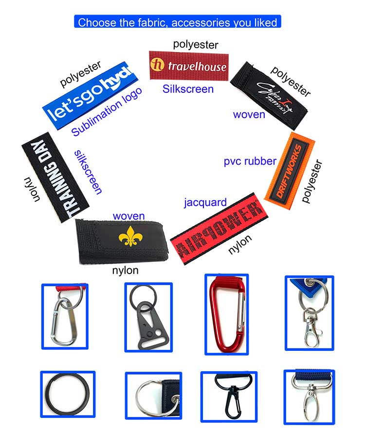The main products are customized tactical climbing keychain, Silicone wristband bracelet, PVC zippers, lanyard printing, lanyard keychain, fabric wristband, textile key ring, luggage strap, camera belt, ID card holder, retractable badge holder, etc.